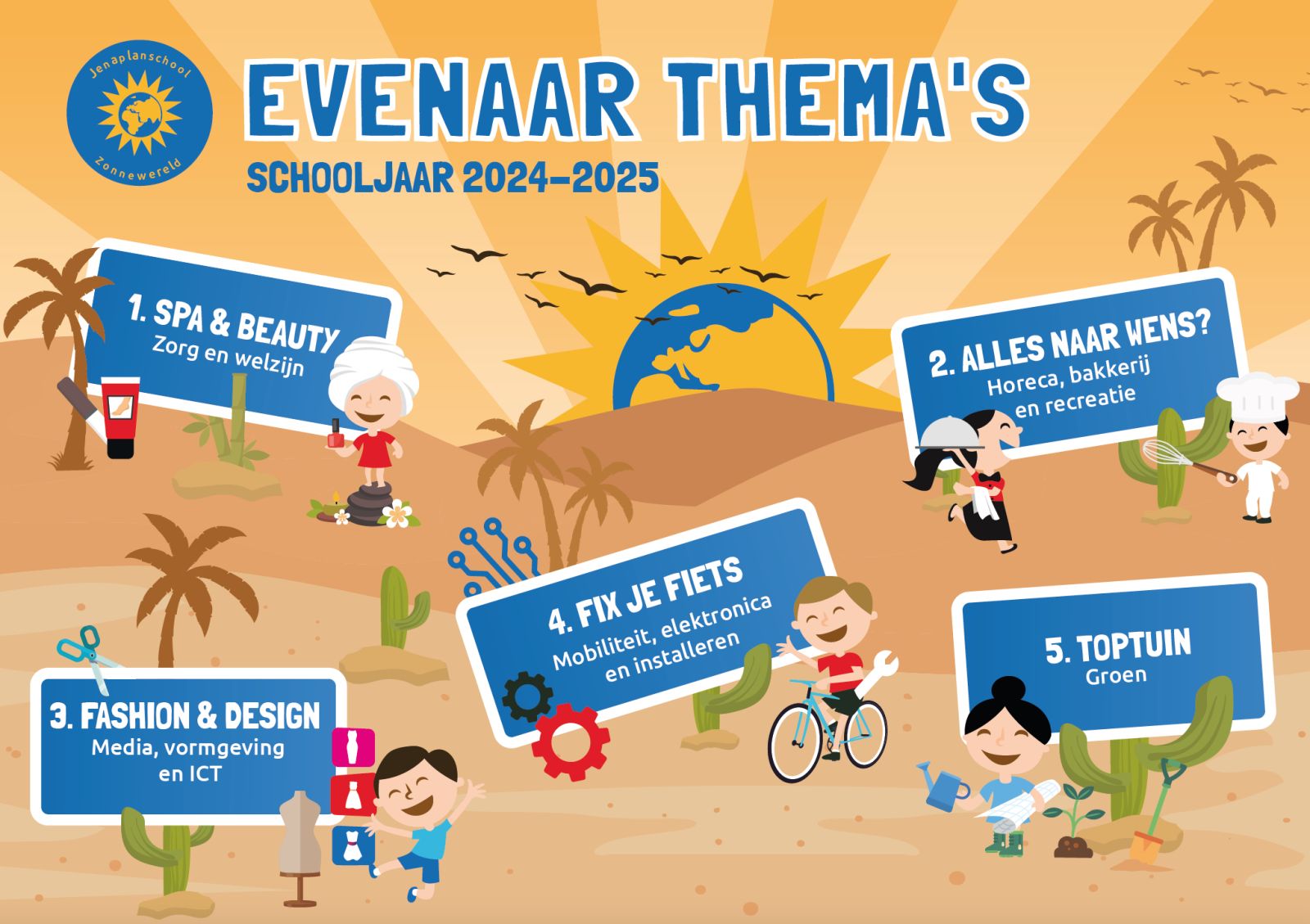Bij De Evenaar, net als bij De Horizon, wordt verder gekeken dan de aansluiting bij individuele leerbehoeftes of talenten van kinderen. Wendel: “We denken ook aan de wereld waar deze kinderen straks in terechtkomen. Bij veel van de onderwerpen die we kiezen, weten we dat er tekorten zijn in de maatschappij. Maar vooral gaat het erom dat je op een jenaplanschool leert om om te zien naar elkaar, zorg te dragen voor jezelf en de ander. We zetten in op leren plannen en organiseren, op samen één groep zijn. Een poos geleden hielpen de kinderen met een broodjesbar voor het goede doel. We hebben toen samen 825 euro opgehaald. We willen graag dat kinderen anders van school gaan: dat ze zien dat ze het niet alleen voor zichzelf doen. Dat er een plek voor hen is in de samenleving en dat ze een taak mogen oppakken naar de toekomst.”