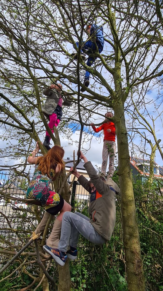 “Ja, toch wel. Nu is een groot gedeelte van het plein betegeld, wat voornamelijk wordt gebruikt voor voetbal en andere sportspelen. Verderop staan klimrekken en dan hebben we het geluk dat het plein uitloopt in een bosgebied. Het verraste me dat een natuurspeelplaats als grootste wens sprak uit de enquête. Ook de kinderen die nu meestal kiezen voor voetbal op de tegels zouden liever een natuurspeelplaats hebben. Een combinatie is voor sommigen van hen ideaal, maar veel voetballers zouden toch ook heel graag hutten bouwen. Dat bosgebied van nu vinden ze wel leuk, maar er ontbreken materialen om te bouwen. Spelen in en met de natuur geeft niet alleen veel beweging en oefening in behendigheid, maar het is relationeel ook goed. Je overlegt, je speelt en bouwt samen – het komt de sociaal-emotionele ontwikkeling ten goede. Heel fijn vond ik het dat veel kinderen ook rekening houden met kinderen met beperkingen en open staan voor een ‘samenspeelplaats’. Dan kun je bijvoorbeeld denken aan een speelhuisje met een bredere ingang, zodat een kind in een rolstoel ook naar binnen kan.”