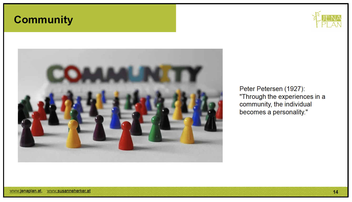 - Herker, S. (2023). Jenaplan Pädagogik - ein permanenter Anspruch auf Zeitgemäßheit. In: Kinderleben 46, www.jenaplan.eu/KINDERLEBEN/